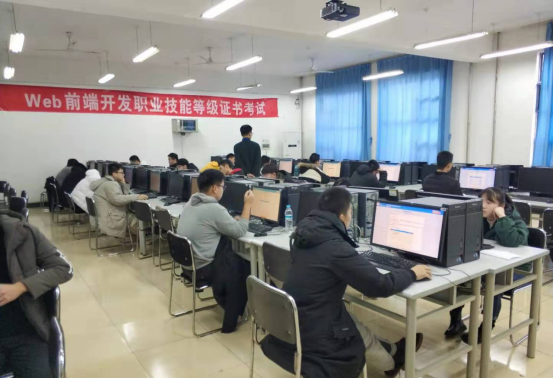 我院于2019年12与28日成功组织软件技术专业同学参加教育部首批“1+X证书”Web前端开发职业技能等级考试。我院严格按照考核评价组织——国家工业和信息化部教育考试中心的各项要求组织学生报名、选聘考点工作人员和监考人员、安排与布置考场等,确保认证考试顺利完成。