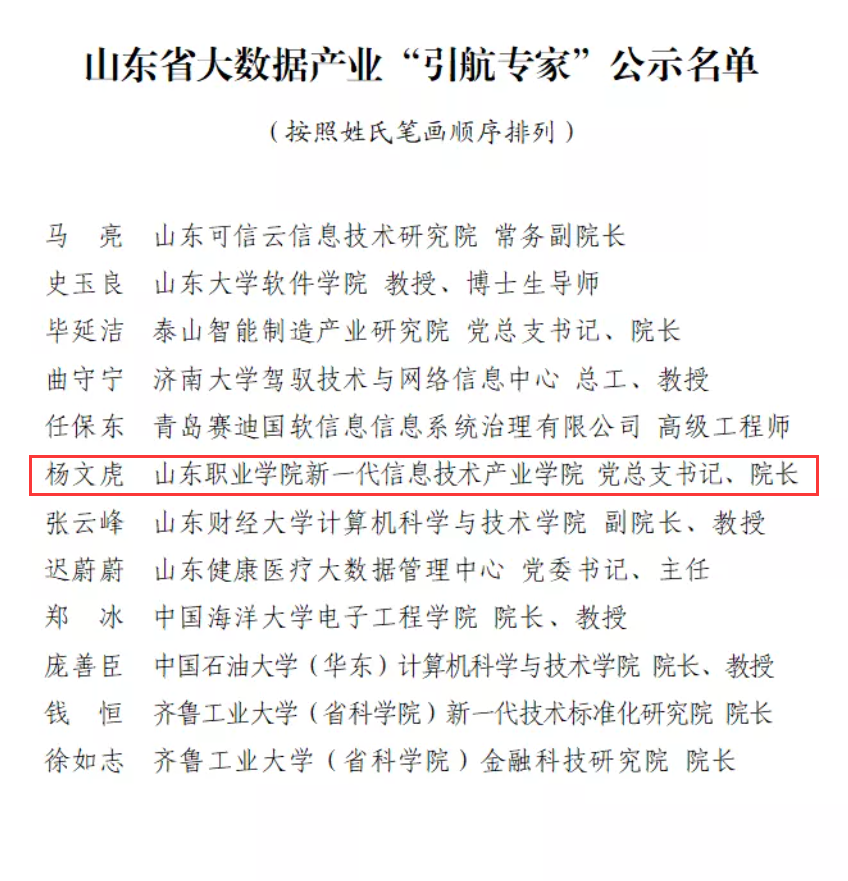 我院杨文虎同志成功入选山东省大数据产业“引航专家”。