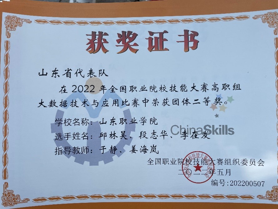 2022年7月28日至31日,由教育部、重庆市人民政府等主办的2022年全国职业院校技能大赛(高职组)“大数据技术与应用”赛项在重庆工商职业学院举办。伟德新一代信息技术产业学院团队,从全国30个省(市、区)的60支参赛队中脱颖而出,取得二等奖的好成绩。
