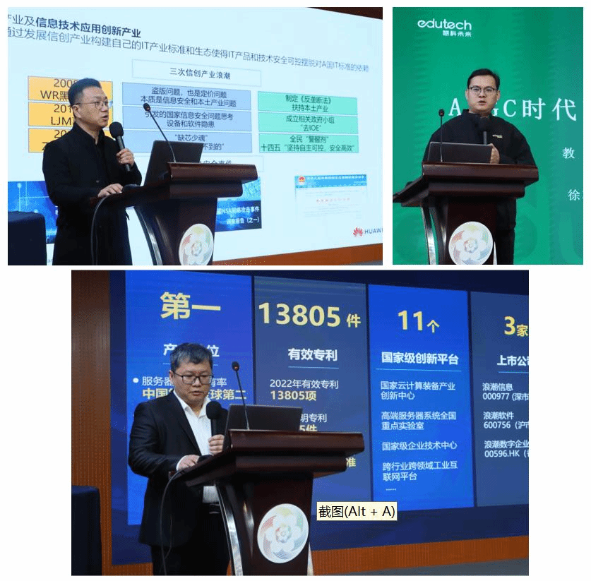 会议邀请华为技术有限公司代表做了题为《信创时代背景下的新一代信息产业变迁和挑战》的主题报告、浪潮软件股份有限公司代表做了题为《人工智能背景下的软件专业群人才培养改革与创新》的主题报告、慧科教育科技集团有限公司代表做了题为《AIGC时代下教育的变革与创新》的主题报告。