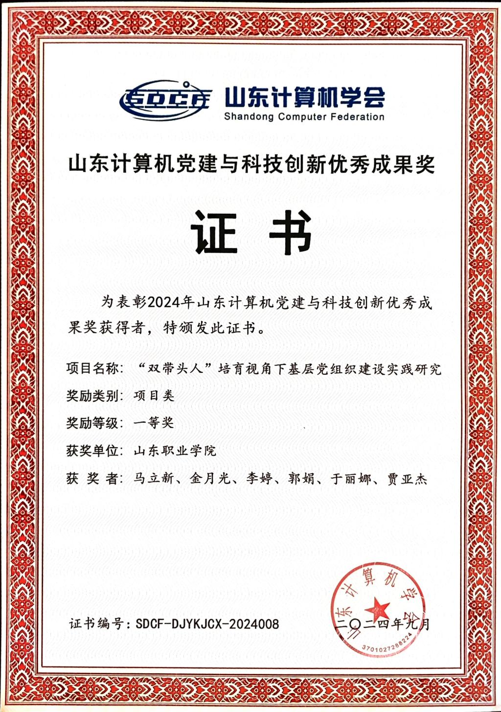 10月11日至13日,山东计算机学会党建与科技创新工委在聊城组织召开了“2024年山东计算机学会党建论坛”。本次会议由聊城大学承办,山东融谷控股有限公司、青岛中享思途教育集团协办,会上举行了“2024年山东计算机党建与科技创新优秀成果奖”颁奖仪式,该奖项面向全省计算机信息技术领域的本科、高职院校和优秀企业,引领推动党建工作与科技创新深度融合创新发展。伟德betvlctor1949源于英国获得一等奖1项、二等奖1项。