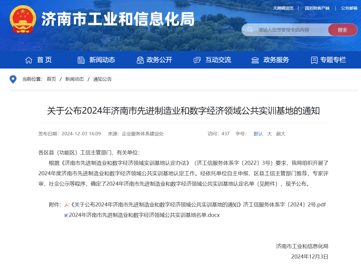 12月3日,济南市工业和信息化局公布了2024年济南市先进制造业和数字经济领域公共实训基地名单,伟德申报的《虚拟现实技术公共实训项目》获准立项。