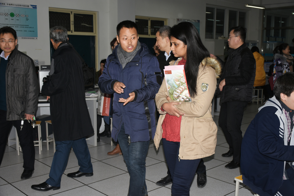 会后,斯里兰卡莫勒图沃大学教师代表团参观了机械制造工艺实训车间,现代通信技术综合实训基地、铁路施工技术实训场,轨道交通综合实训中心,信号和控制实验室等,各实训室和演练场所内均由专业教师向来宾用英文做了详细的讲解,讲解精彩,加深了来宾对实训设备、项目教学和教学做一体化的理解。