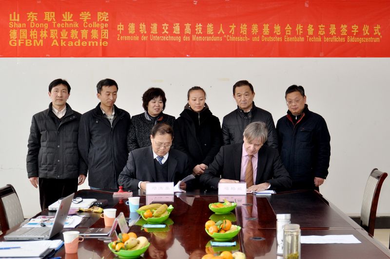 2011年11月1日,德国柏林职业教育集团福格臧先生、闫俊女士、陈文休先生一行三人到访学院,校企双方曾在专家授课、技术研发、师资培训、学生互访学习、技能认证等方面作了初步的了解与沟通。此次双方签署中德轨道交通高技能人才培养基地合作建设备忘录,不仅是对前期达成共识基础的进一步夯实,也为接下来的深层次务实合作奠定了良好的局面。
