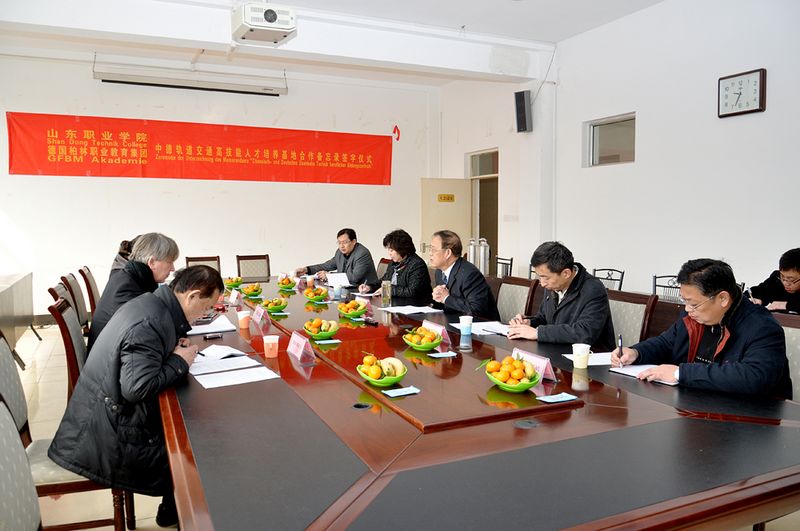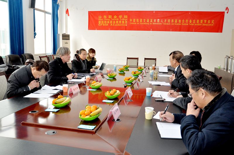 福格臧先生在签字会谈期间就德国柏林职业教育集团业务情况作了简要说明,就“中德轨道交通高技能人才培养基地”建设合作项目通过图表、数据等形式作了细致讲解。他表示,德国“双元制”职业教育体系重在政府主导,行业、企业共同参与。此次与学院签署德中轨道交通高技能人才培养基地合作建设备忘录,在接下来的工作中,德国柏林职业教育集团将有针对性的挑选适合基地合作建设的德国企业,与学院共同研究、制定基地建设方案,探讨国际间校企合作新模式。