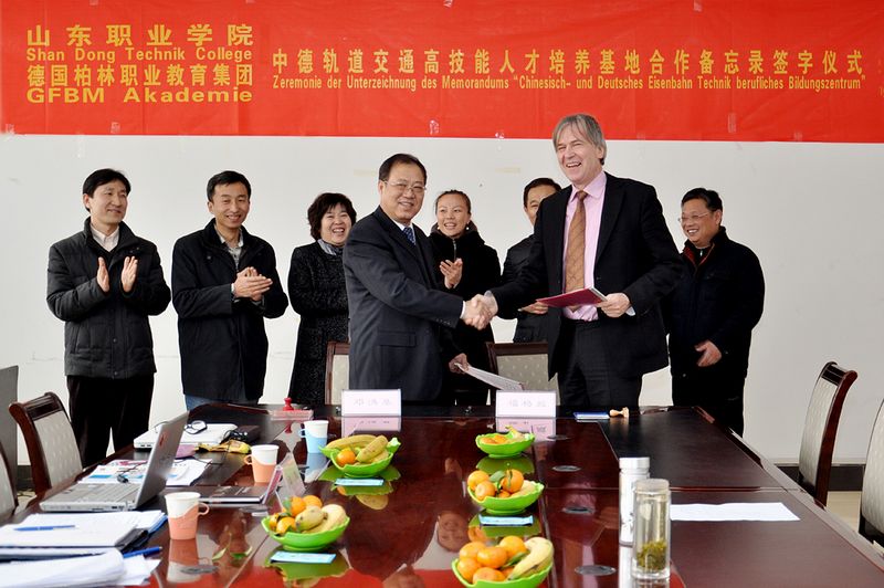 邓洪基表示,此次与福格臧先生携手签署中德合作备忘录,不仅为“中德轨道交通高技能人才培养基地”建设项目达成了初步合作意向,同时也期待着在接下来的合作详谈中能够进一步深化合作方案,明确合作任务,制定详细计划,务实高效地推进国际间的校企交流合作,通过双方的共同努力,将该基地建设成具有德国职业元素、集“人才培养、职工培训、技能鉴定、技术服务”四位一体的、在全国具有重要影响力的培养高技能人才的示范基地。
