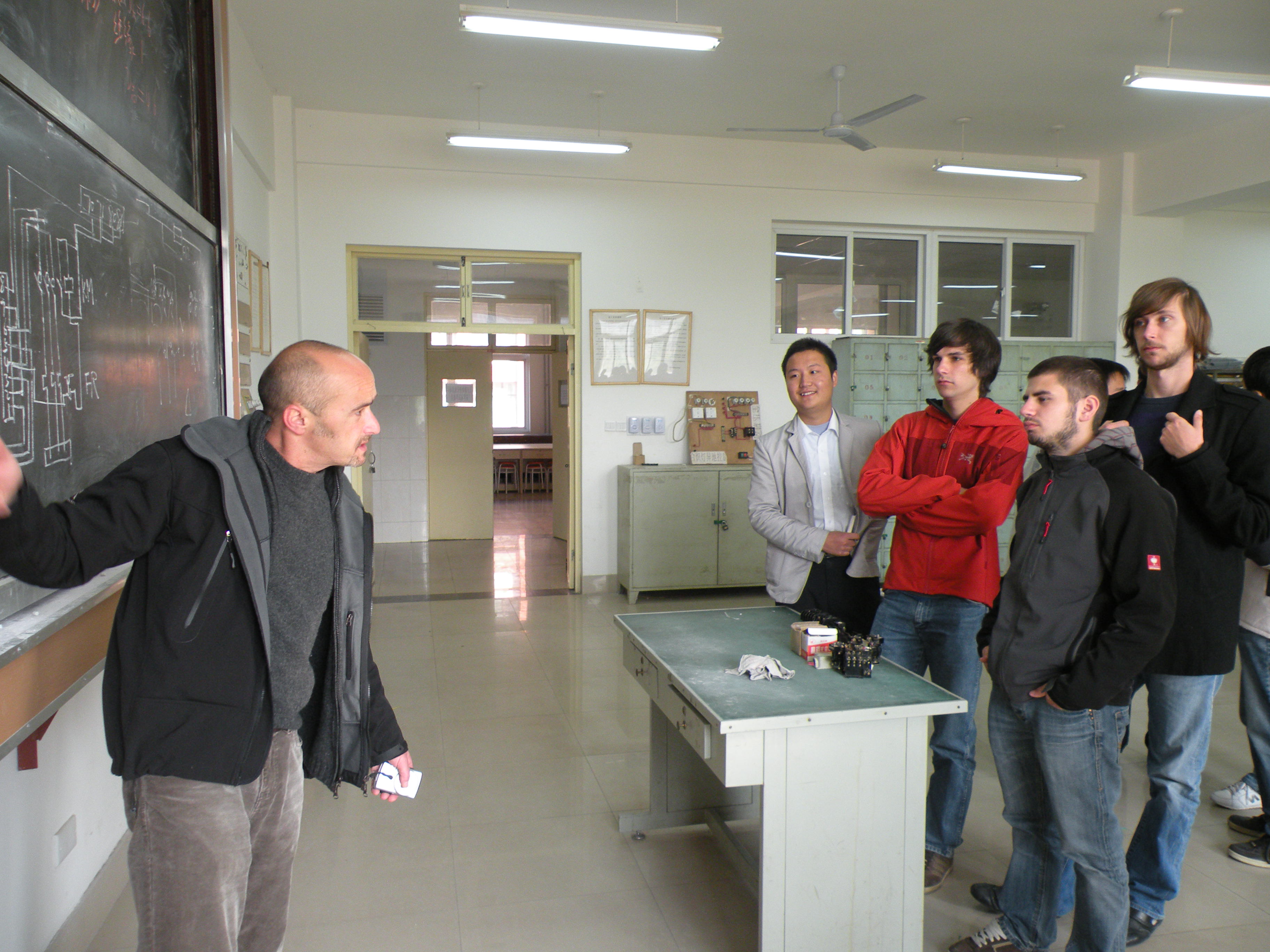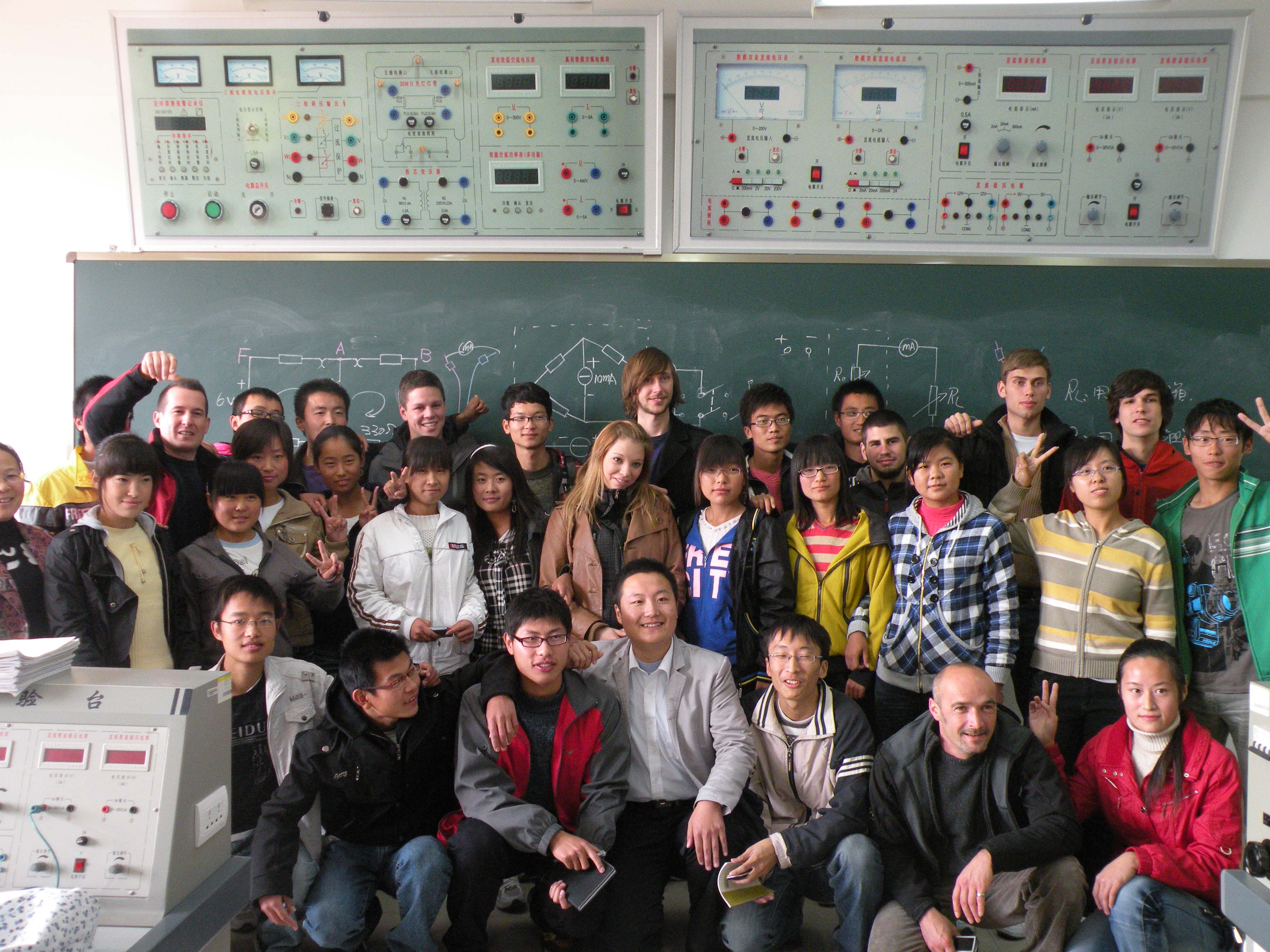 27日上午,电气工程系于洪永主任、党总支徐晓东书记和我系师生代表与德国师生代表团进行了增进友谊的座谈会。座谈会上,于主任首先代表电气工程系全体师生对德国师生代表团的到来表示热烈欢迎。随后,于主任向他们简要介绍了电气工程系的专业设置及培养目标,并解答了来访师生提出的问题。一番亲切的交谈过后,在于主任的带领下,德国师生参观了电气工程系的电工实训室、电机与电器实验室、电子实验室、SMT实践基地等实践教学场所,并与电气工程系的学生一起上课、实训,探讨实践内容。在电子实验室参观期间,德国学生对实验台上的线路产生了浓厚的兴趣,主动要求与我系同学一起进行实验操作,德国老师FellnerAndreas也进行了现场教学,德国师生的精彩展示让我系师生大开眼界。课程结束后,我系学生和德国学生一起拍照留念,记录这难忘的一刻。
