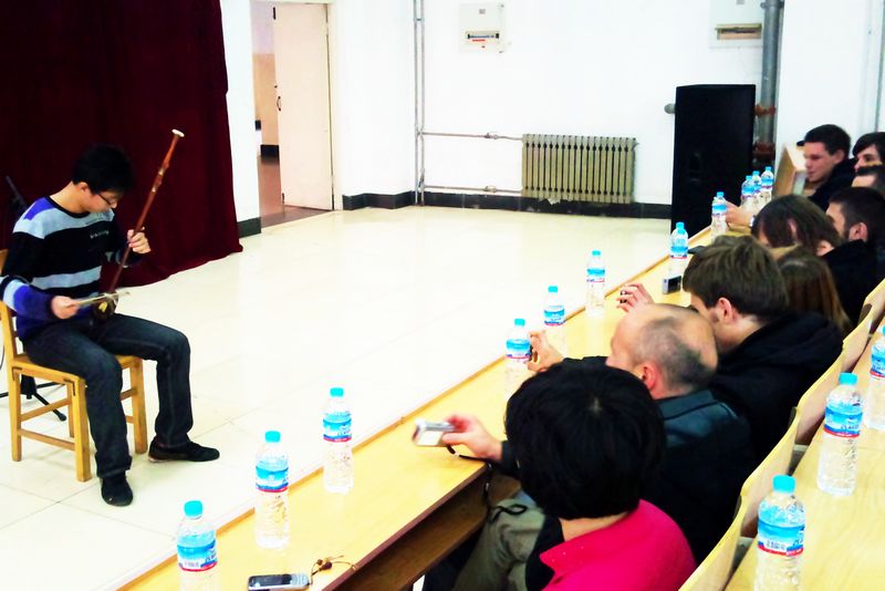 下午三时,3112教室内欢歌笑语,掌声阵阵,由宿悦同学带来的《baby one more time》为联欢会拉开了序幕。动感的节奏、略带沙哑的嗓音,把我们带进了“托着下巴敲桌子”的时代,让我们重温了布莱尼的经典之作;二胡独奏《金蛇狂舞》,弦律流畅、跌宕起伏,境如万马奔腾,势如波涛汹涌,深深地吸引了德国友人的眼球;古筝演奏《丰收锣鼓》、《渔舟唱晚》,清耳悦心、余音袅袅,将我国传统的民族艺术文化展现的淋漓尽致。