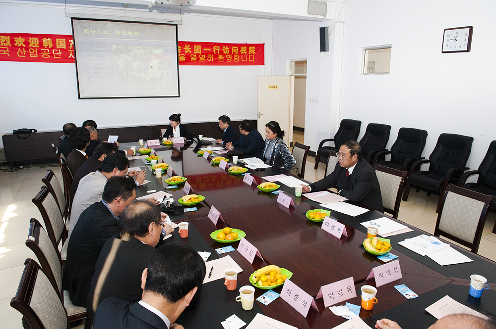 刘书记对韩方的邀请表示感谢。刘书记说,当前,政府鼓励中外合作办厂、办学,外资企业在中国的发展有着良好的前景。作为学院发展内涵建设的重点项目之一,学院愿意为中外合作付出努力,提供更好条件。郭会长表示,韩方企业注重对人的鼓励和培养,如果能促成中韩合作事宜,企业愿意为学院提供资金和技术上的支持,为中方学院的建设和韩方企业的发展做出应有的贡献。