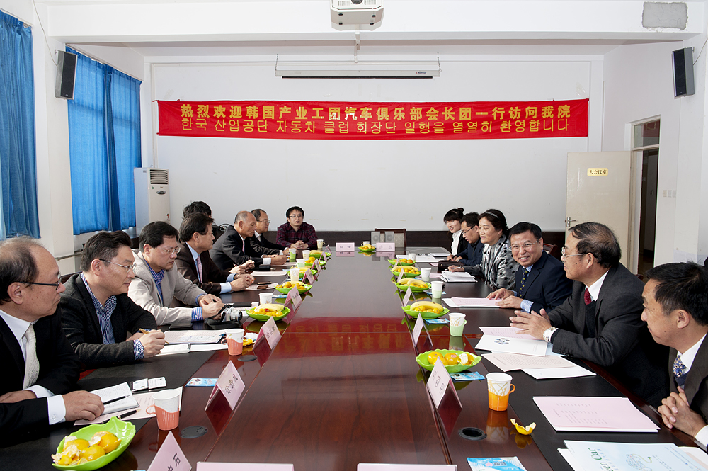 11月1日上午,韩国产业工团汽车俱乐部会长团一行访问济南铁道职业技术学院。学院党委书记刘邦治、院长邓洪基、副院长马庆渭热情接待来访客人,双方就中外校企合作事宜展开洽谈。