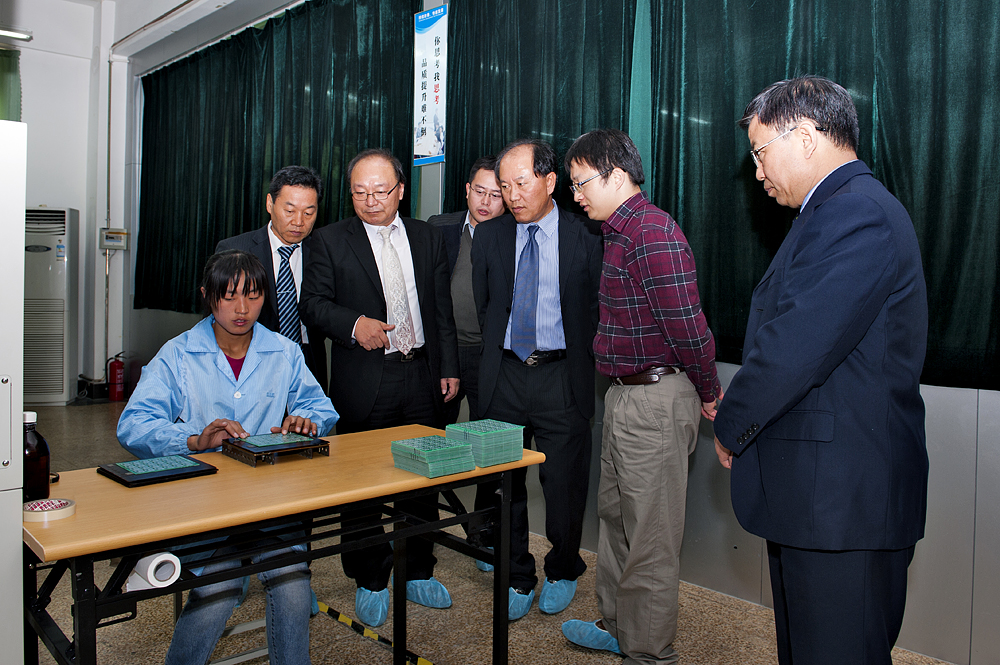 洽谈会后,韩方在学院领导的陪同下一起参观了学院电气工程系SMT生产线实训室,合影留念。