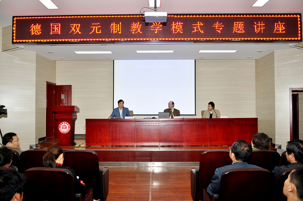 11月4日,德国兰德舒特高等技术学院院长Aigner(艾格纳)博士到访伟德betvlctor1949源于英国作《德国“双元制”教学模式》专场学术讲座。学院党委副书记、常务副院长马文卿出席并主持讲座,副院长祝瑞花、各系主任、教研室主任、教师及学生代表与会听取专家报告。