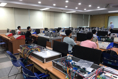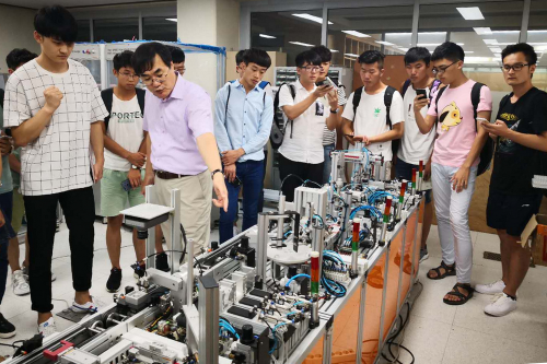 此次赴韩交流的15名学生来自学院铁道车辆与机械工程系、铁道机车与机电装备系和铁道供电与电气工程系,他们被分为机电机械组和电气组,分别在校内实训室和校外企业开展专业技能学习实训和文化交流。机电机械组学生在岭南理工大学校内实训室学习了CAD和soildworks建模软件,熟悉软件开发过程及设计形态,通过装配图设计案例,学习使用软件、制作装配视频,并了解建模软件与3D打印机的操作关系。电气组学生在实训室实训PLC(可编程逻辑控制器)课程,学习对LG系列的PLC进行编程和控制,掌握了PLC的基本编程方法和远程控制PLC时使用CimonD提供HMI(人机接口)的方法,对PLC的编程和应用场景有了深刻认识。