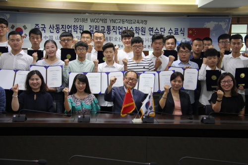 学习交流期间,师生们还参观了岭南理工大学多个实验场所和浦项POSCO制铁公司、韩国现代汽车公司,学习韩国文化课程,利用周末参观海印寺,受邀与韩国学生共进特色美食。一系列丰富充实的交流互动,中韩师生也结下了深厚友谊。在结业仪式上,岭南理工大学副校长李在勇为学生们颁发了结业证书。