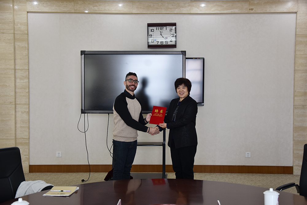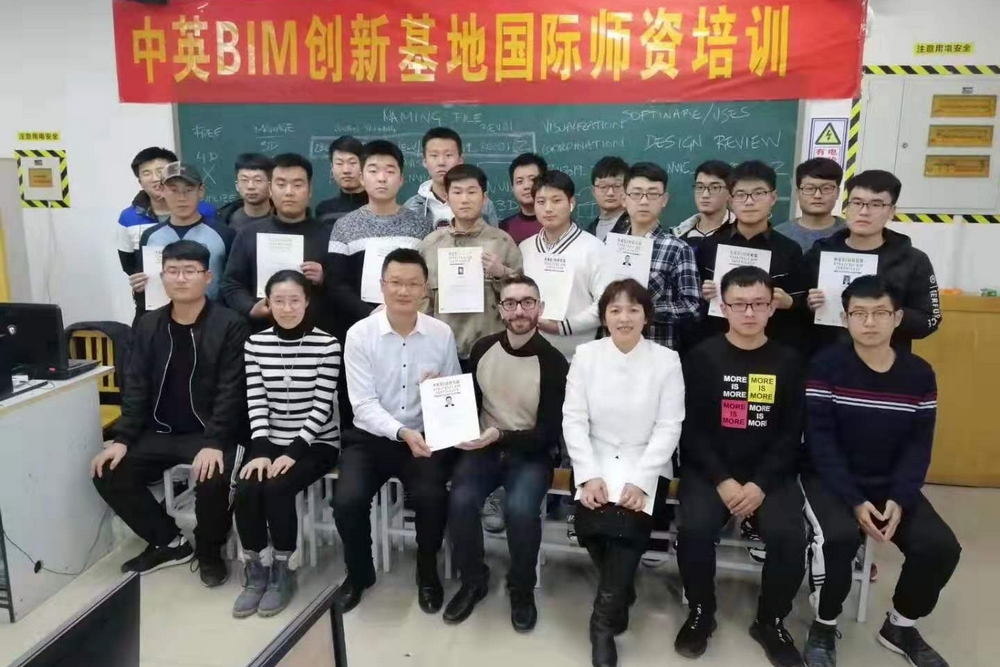 学院副院长祝瑞花出席活动,与采薇君华公司董事长郭淑婷共同为“中英BIM研究院(山东)”揭牌,向英国BIM培训专家JUAN颁发聘书,聘请他为我院中英BIM研究院(山东)项目专家。学院国际交流与合作中心主任吕子泉、铁道工程与土木工程系主任郭兆军陪同参加活动。