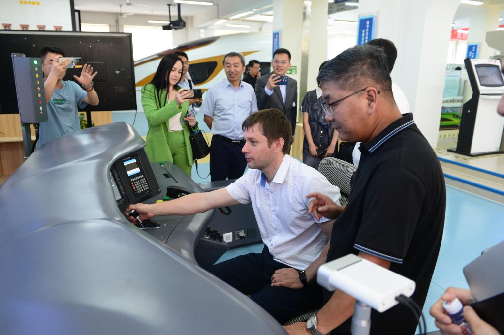雷昆·阿尔捷姆·尤里耶维奇一行还实地考察了伟德轨道交通实验实训中心、梧桐花开实验室、动车组机械师实训中心等地,并与师生进行了互动交流。