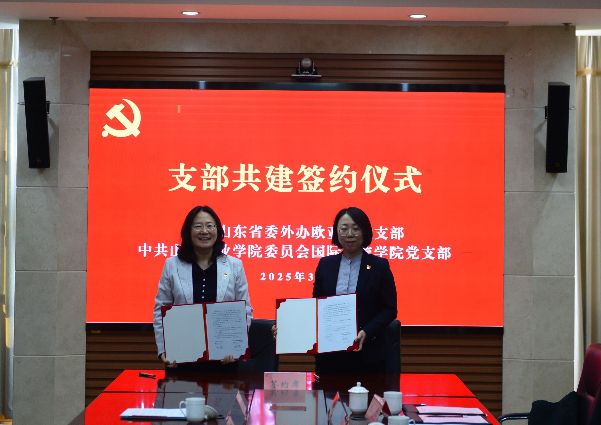 纪彩云与国际交流学院党支部书记展春蕾代表双方签署了支部共建协议。