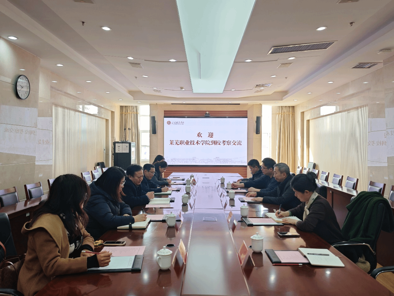 3月6日,莱芜职业技术学院党委委员、副院长周美栋一行到校考察交流。党委副书记郭鹏出席会见。