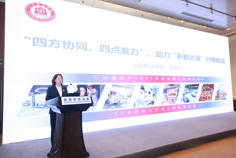 赵凤文在大会“新时代、新机遇,推动‘中文+职业技能’教育高质量发展”平行会议作交流发言,围绕打造高质量“中文+职业技能”教育支撑体系,从“中文+技能”“标准+资源”“培养+激励”和“语言+艺术”四个方面,分享了伟德在“职教出海”领域的探索与实践。