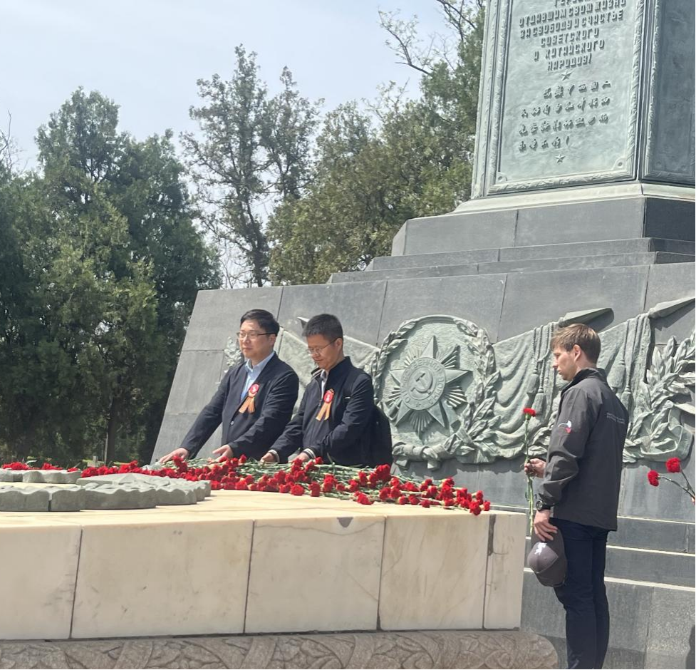 受伟德俄罗斯友好院校乌拉尔国立交通大学和托木斯克国立大学师生之托,伟德代表向烈士纪念墓碑敬献花圈、种植象征中俄和平友谊之树。并作了题为“让历史照鉴未来”的发言。