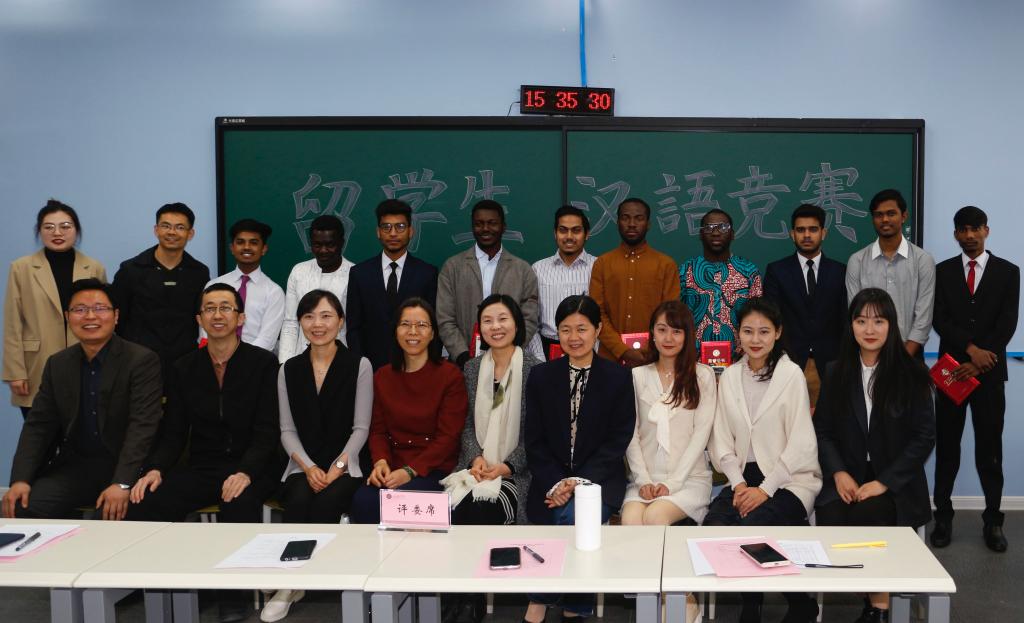 此次比赛以“中国文化”和“我的第二故乡”为主题,共有11位选手参加。比赛通过笔试和口试两个部分,分为专科组和本科组,最终决出一等奖两名,二等奖三名,三等奖六名。赛后,评委老师司晓辉、张慧丽等对本次选手的表现进行了专业点评,国际交流学院院长张欣对选手的表现给予了肯定,并希望留学生互相交流,继续努力,学好汉语,架起自己祖国与中国间文化交流的桥梁。最后获奖选手与颁发老师、评委合影留念。
