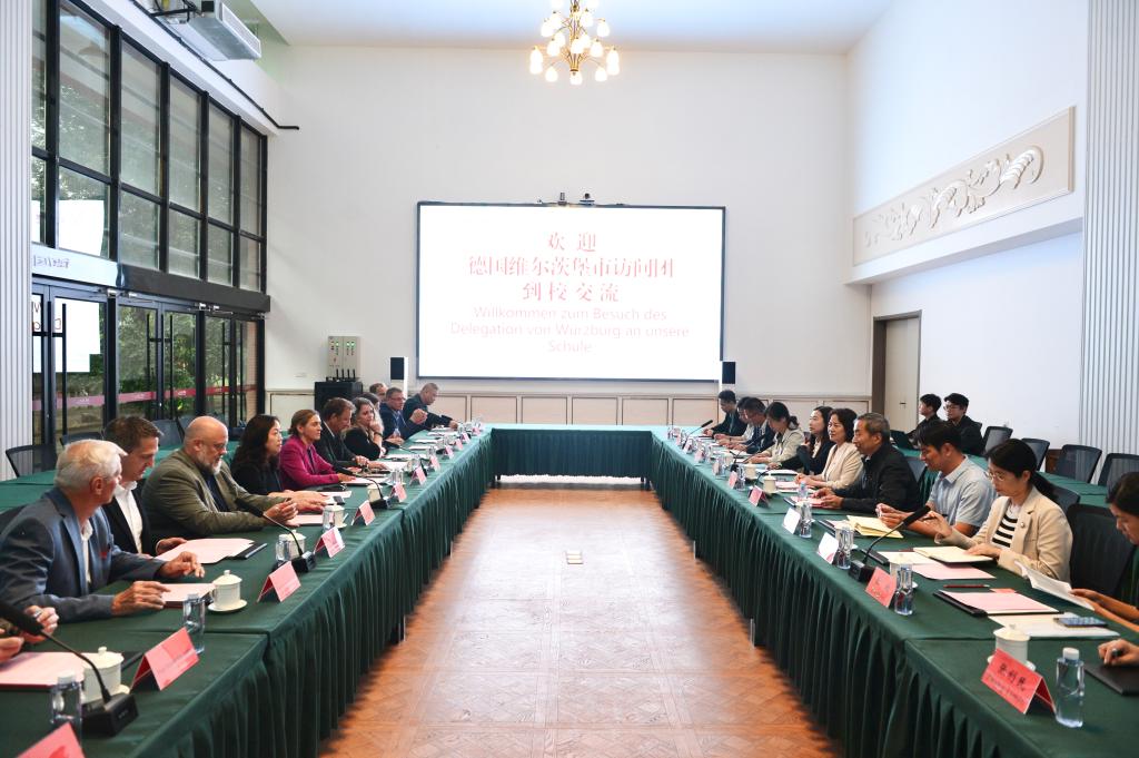 赵凤文对德国维尔茨堡市访问团一行来访表示热烈欢迎,介绍了学校基本情况及对德合作情况,并在加强合作办学、推进校企合作、促进文化交流等方面提出期望。
