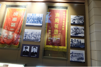 小栀观察家一行15人,来到解放阁,拾阶而上,宏伟庞大的建筑、优美的风景深深吸引住了大家的眼球。小栀观察家们在解放阁内参观了济南战役中解放战士使用过的潜望镜、冲锋枪等作战武器,通过观看图片、文字记载,深入地了解了济南战役的整个作战过程以及中国人民解放军华东野战军济南第一团、济南第二团的光荣历史。当年战役场景仿佛在小栀观察家眼前展现,敬畏老革命家不畏死亡、浴血奋战的革命精神,深刻地懂得革命胜利的来之不易,现今的幸福生活更应珍惜。