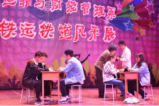 铁路风采展在古典国风舞蹈《采薇》中拉开帷幕,接着歌曲《青春铁道》用悠扬的歌声唱出铁路工作人员无私奉献的精神;《接发列车》手信号演示,动作规范整齐,一丝不苟,这让同学们更好的熟悉了铁路工作,也让同学们将其所学更好的运用到未来的工作岗位中。当同学们沉浸在节目热闹的氛围中,主持人应时提出了一个抢凳子的游戏环节,将会场氛围推向了高潮;接下来的情景剧《票价》为同学们解答了为什么火车站票与座票票价一样的困惑,让同学们了解到更多的铁路知识;《铁路人的年》把悦耳的笛声和深情的朗诵相结合,展现了铁路人过年依然坚守岗位舍小家顾大家的无私和伟大;小品《平凡的一天》通过地铁工作人员积极负责接待乘客的工作态度,展示了平凡铁路工作人员的不平凡;具有特色的《礼仪展示》展现给观众不一样的铁路风采,一改同学们心中铁路工作枯燥乏味的形象。最后,晚会在《青春的高铁》歌声中完美落幕。