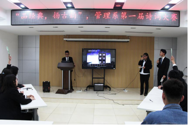 为促进学生们的全面发展,培养学生们对古诗词的兴趣,铁道运输与财经管理系在4月10日举办了“品经典,扬古韵”第一届诗词大赛,辅导员徐亚男出席了本次比赛。
