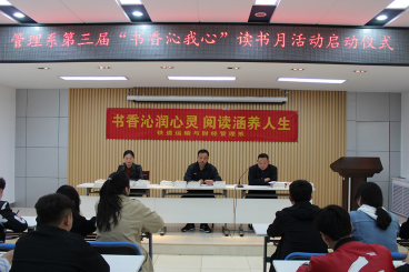 为进一步推进书香校园文化建设,弘扬多读书、读好书、好读书的良好风尚,提高同学们的综合素质,铁道运输与财经管理系于4月12日举办了第三届“书香沁我心”读书月活动启动仪式。党总支书记吕鹏、学工办主任栾金志、团总支书记张锦出席了本次活动。