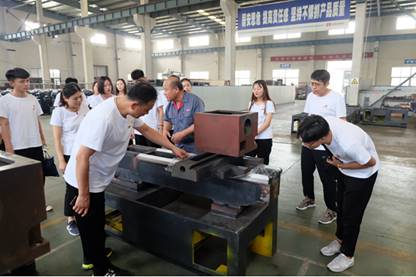 7月12日,小栀观察家团队来到了鲁南地区机床行业的重点骨干企业——山东威达重工股份有限公司,同学们深入一线,对公司车间厂房进行参观。厂房内各个岗位上的工作人员操作娴熟、专心致志,技术人员稳中求进的工作态度,工作期间细致严谨的工作作风,面对困难迎刃而上的工作精神都让同学们赞叹不已、感触颇深。