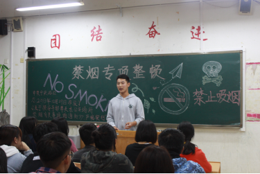 为营造文明、健康、安全的校园环境,培养优良学风和校风,根据学院的相关规定,按照系部领导的要求,我系开展学生禁烟宣传教育主题班会,在班会上各班班长说明吸烟的危害性,并强调严禁所有人在公共场所抽烟,同时宣读了学校关于吸烟和禁烟的有关规定。