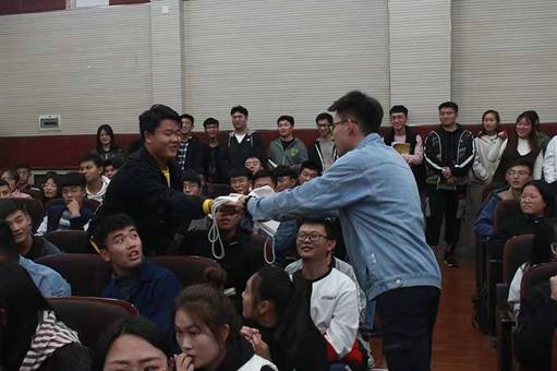 作为退休的学生干部,曹雪阳向在场的学生干事们提出了不忘初心,恪守学生本分、学生干部不是官、律人先律己、站稳立场、团结实干五点忠告,告诫大二、大一的学生干事们要团结实干,不忘初心,站稳立场,认真完成好各自部门的工作。报告最后,曹雪阳对提拔他的老师表达了衷心的感谢。随后的提问环节中,同学们积极主动的提问,面对各式各样的问题,曹雪阳耐心认真的给予回答。在抽奖环节,曹雪阳现场随机抽取了七名观众赠送了奖品。