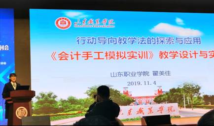 我院由铁道运输与财经管理系翟美佳老师作为职业院校优秀教师代表,在会上做了“行动导向教学法的探索与应用——《会计手工模拟实训》教学设计与实施”的汇报,得到与会各专家的好评。翟老师介绍了各种教学方法的应用,尤其突出了可视化教学法,学生制作的上百张精美的会计业务流程图在会场上给各位代表留下了深刻的印象,展示了我院在职业教育课程建设中的不断探索和取得的丰硕成果。