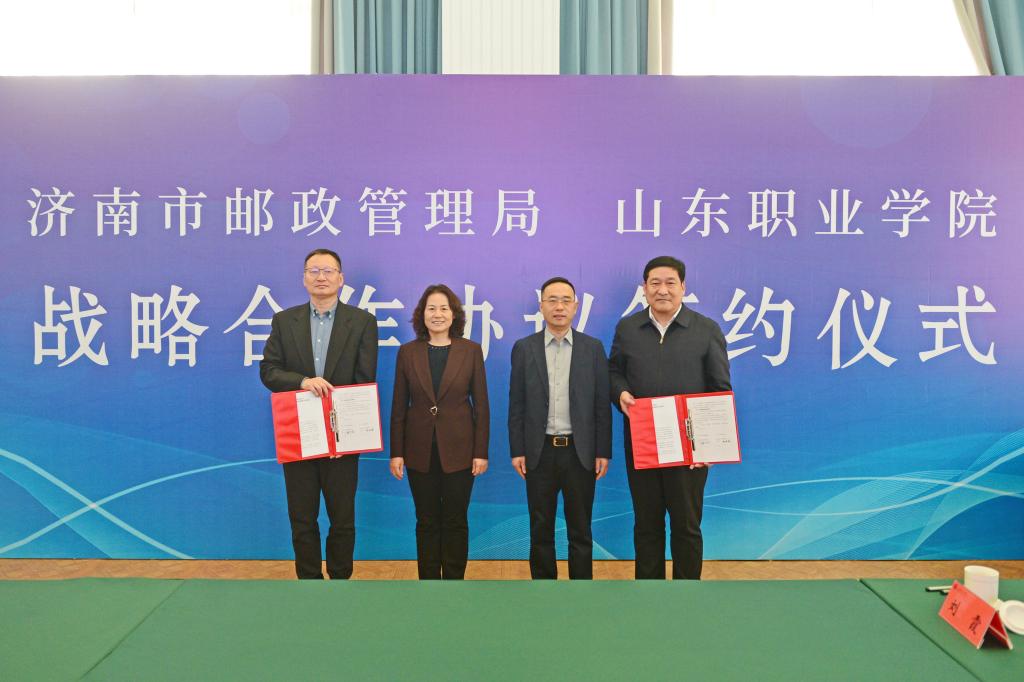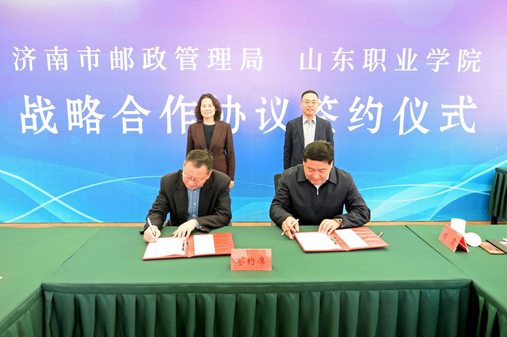郭培谦、贺方启代表双方签署《济南市邮政管理局与伟德betvlctor1949源于英国战略合作协议》。