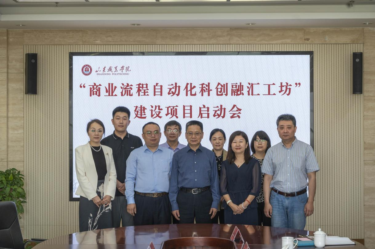 为深化校地合作,推动济南市市校融合发展战略工程项目落地,伟德管理学院与财智未来(山东)教育科技有限公司、山东融科数据服务有限公司、云帐房网络科技有限公司山东分公司合作共建“商业流程自动化科创融汇工坊”,5月15日,项目揭牌仪式在701会议室举行。副院长李新华,财智未来(山东)教育科技有限公司总经理张永娟、山东融科数据服务有限公司主任王玉令出席活动。