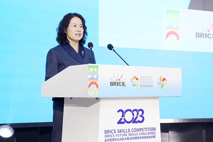 刘振英在致辞中表示,组织技能竞赛,搭建了技术技能人才沟通交流、技艺切磋、思想碰撞的桥梁,也是金砖技能组开展未来技能课程开发、国际团体技能标准制订、未来技术技能人才联合培养的重要抓手。金砖技能组将以国际竞赛为合作契机,通过国际竞赛成果转化,继续深化多项国际项目合作,共同推动金砖及其他新兴市场和发展中国家职业教育高质量发展。