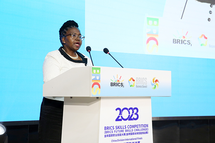 Mapule·Ncanywa在致辞中表示,希望能有更多的合作单位参与到金砖国家职业技能标准制定、未来技能课程开发、建立技能研讨会等合作,为更多的年轻人提供机会,为金砖国家经济可持续发展作出贡献。