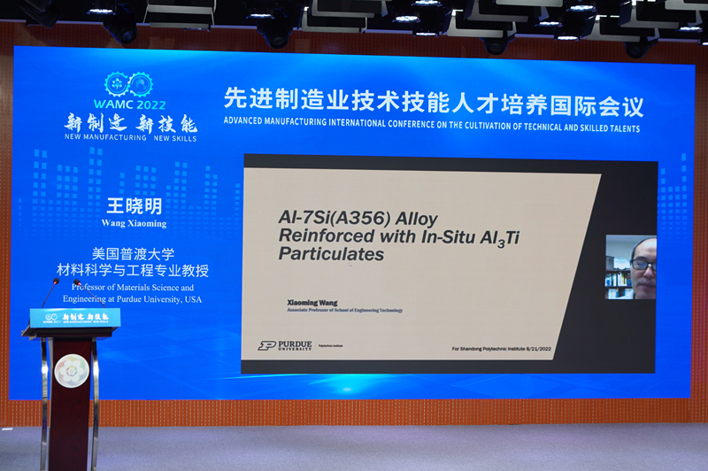 美国普渡大学材料科学与工程专业教授王晓明作《制造新材料-原位钛化铝颗粒增强铝硅合金的制备与性能研究》专题报告