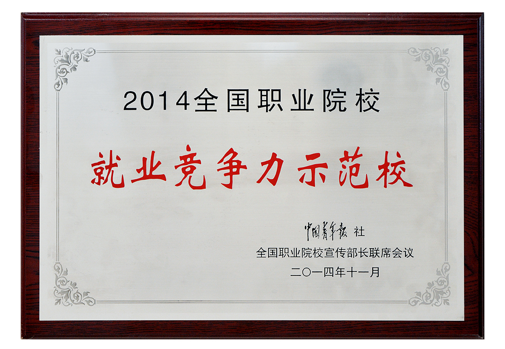 “2014全国职业院校就业竞争力示范校”推选活动由中国青年报社、全国高职高专校长联席会议、全国职业院校宣传部长联席会议主办,中青在线、中国高职高专教育网提供网络支持,参选对象为全国高职高专院校。活动从推荐名单中遴选出30家高职院校获得“2014全国职业院校就业竞争力示范校”称号,授予“2014全国职业院校就业竞争力示范校”牌匾。