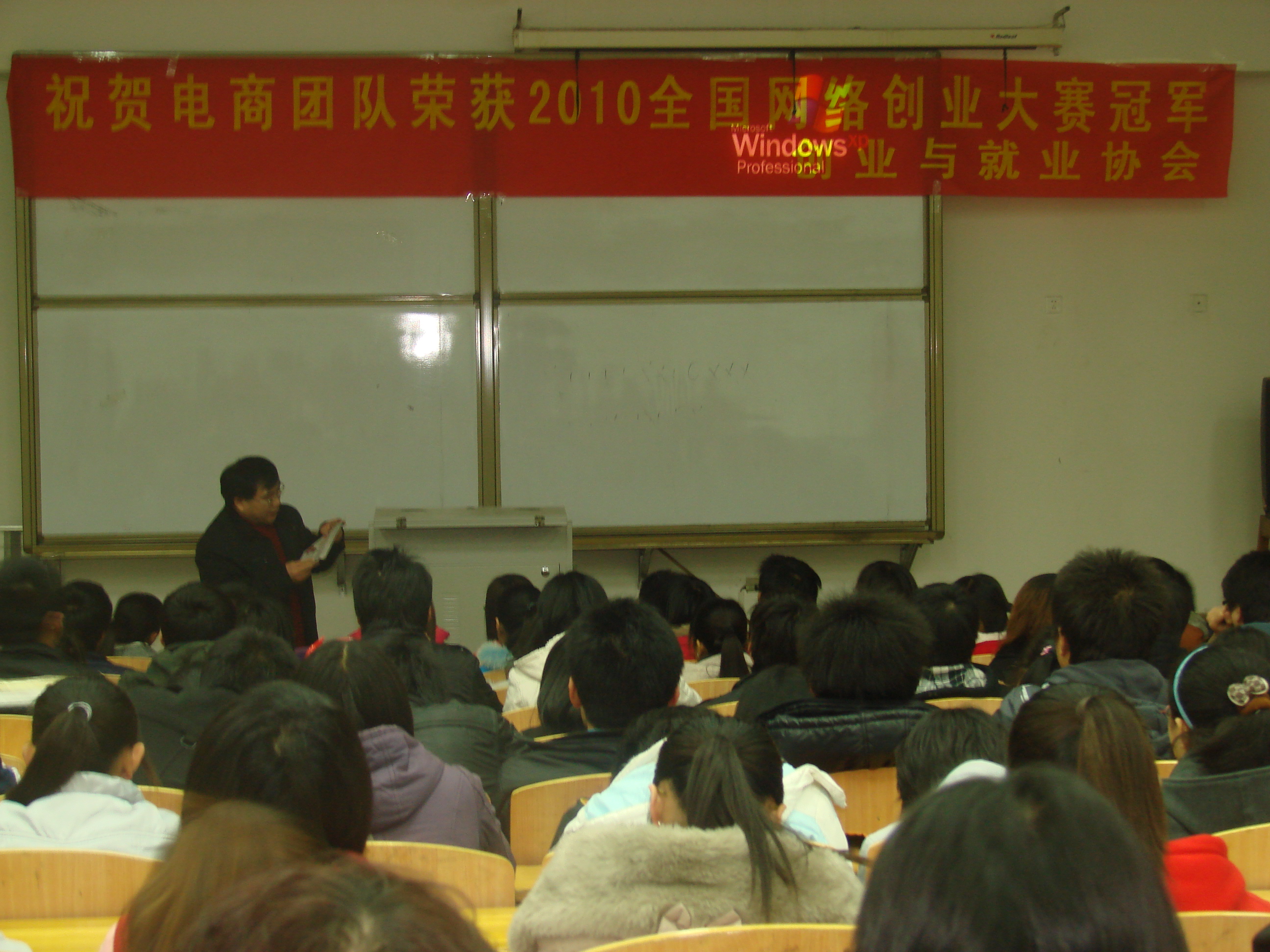 为使管理系同学树立正确的就业与创业的观念,提高创业与就业能力,由管理系就业与创业协会主办的就业与创业专题报告会于2011年3月10日在4211教室举行。管理系就业办刘召成主任会同在“2010全国网络创业大赛”中取得冠军的电商团队一起进行了报告, 为同学们创业和就业传经送宝。