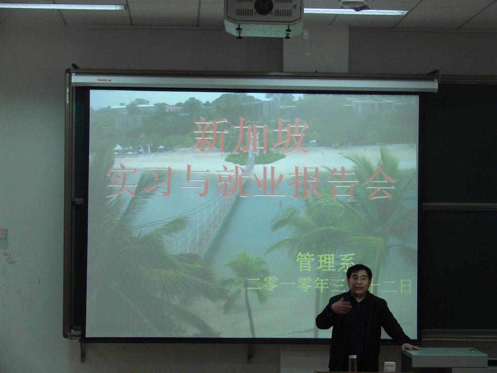 为帮助管理系同学正确认识当前的就业形势,转变就业观念,向广大08级学生提供新的就业方向,管理系新加坡实习与就业报告会于3月12日下午在新校区4112教室成功举行。管理系就业办刘召成主任主持了此次报告会。