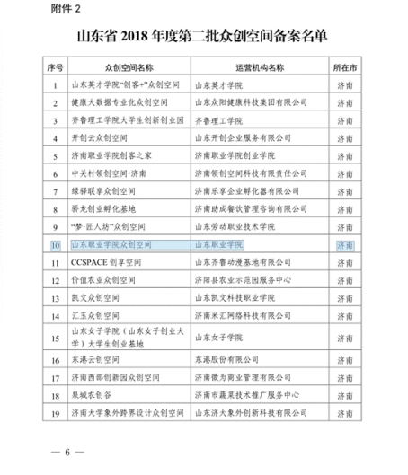 近日,我院众创空间(创新创业孵化基地)成功获得山东省省级众创空间备案。这是继申报济南市泉城众创空间支持计划后,我院招生就业处和创新创业中心在创新创业教育方面深耕细作,不断进取,在发展进程中取得的又一个阶段性成果。