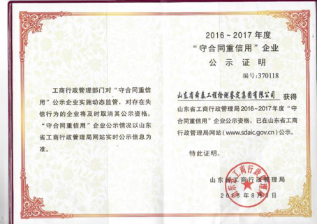 正是因为他坚持,让集团公司得到了快速健康的发展,先后被评为山东省诚信建设示范单位、山东省服务名牌企业、山东省守合同重信用企业、济南市服务名牌企业、济南市守合同重信用企业等荣誉称号。集团公司现已成为专业的工程质量检测、鉴定、加固设计、加固施工、工程咨询、勘察设计、环境保护为一体的综合性技术服务型企业集团,是山东省内资质最全、技术最优、服务最好、最具诚信的独立的第三方检测鉴定机构之一。