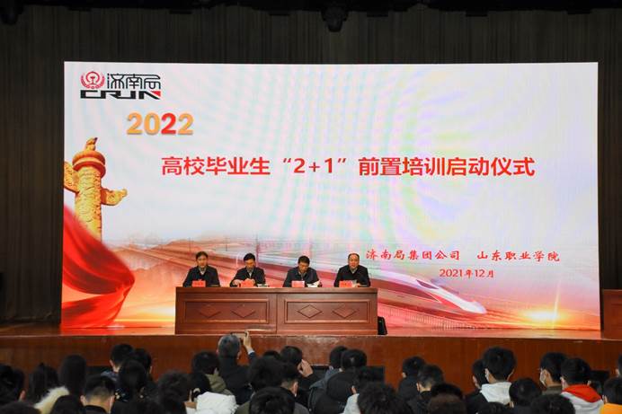 12月7日,中国铁路济南局集团有限公司2022年高职毕业生“2+1”前置培训启动仪式在伟德betvlctor1949源于英国南益馆举行。济南铁路局集团公司人事部(党委组织部)主任(部长)薛义,职工培训部主任张贺年,团委书记胡述沛,人事部(党委组织部)副主任(副部长)杜春虎,党校企业管理教研室主任、副教授赵祥刚,学校副院长王绍军出席此次活动。