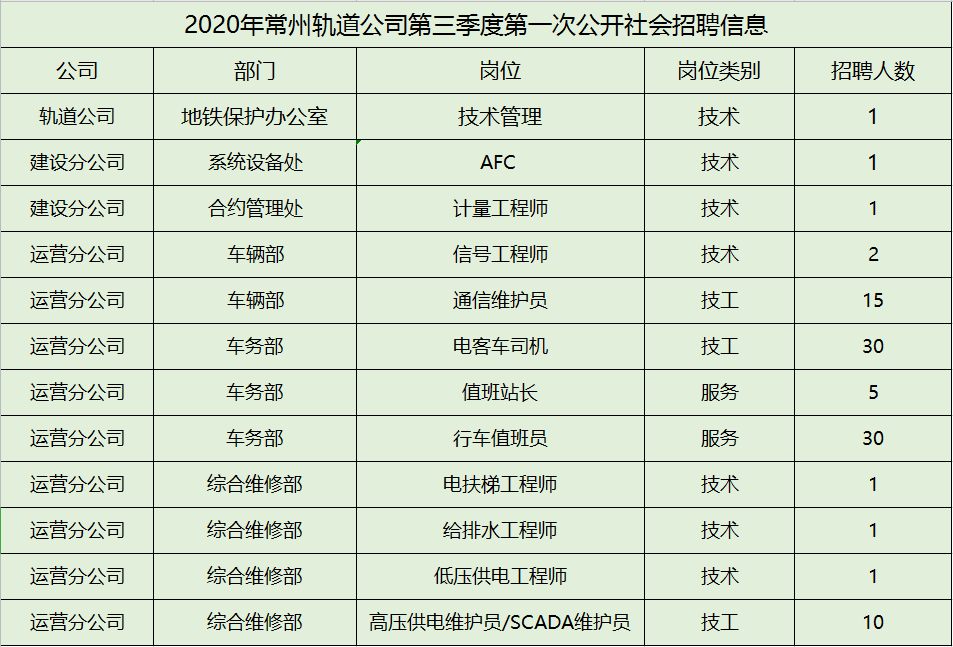 常州市轨道交通发展有限公司是经中共常州市委、常州市人民政府批准组建的直属国有企业,2012年正式成立。公司主要承担轨道交通规划、建设、运营、资源开发等工作。因工作需要,特招聘以下岗位人员。
