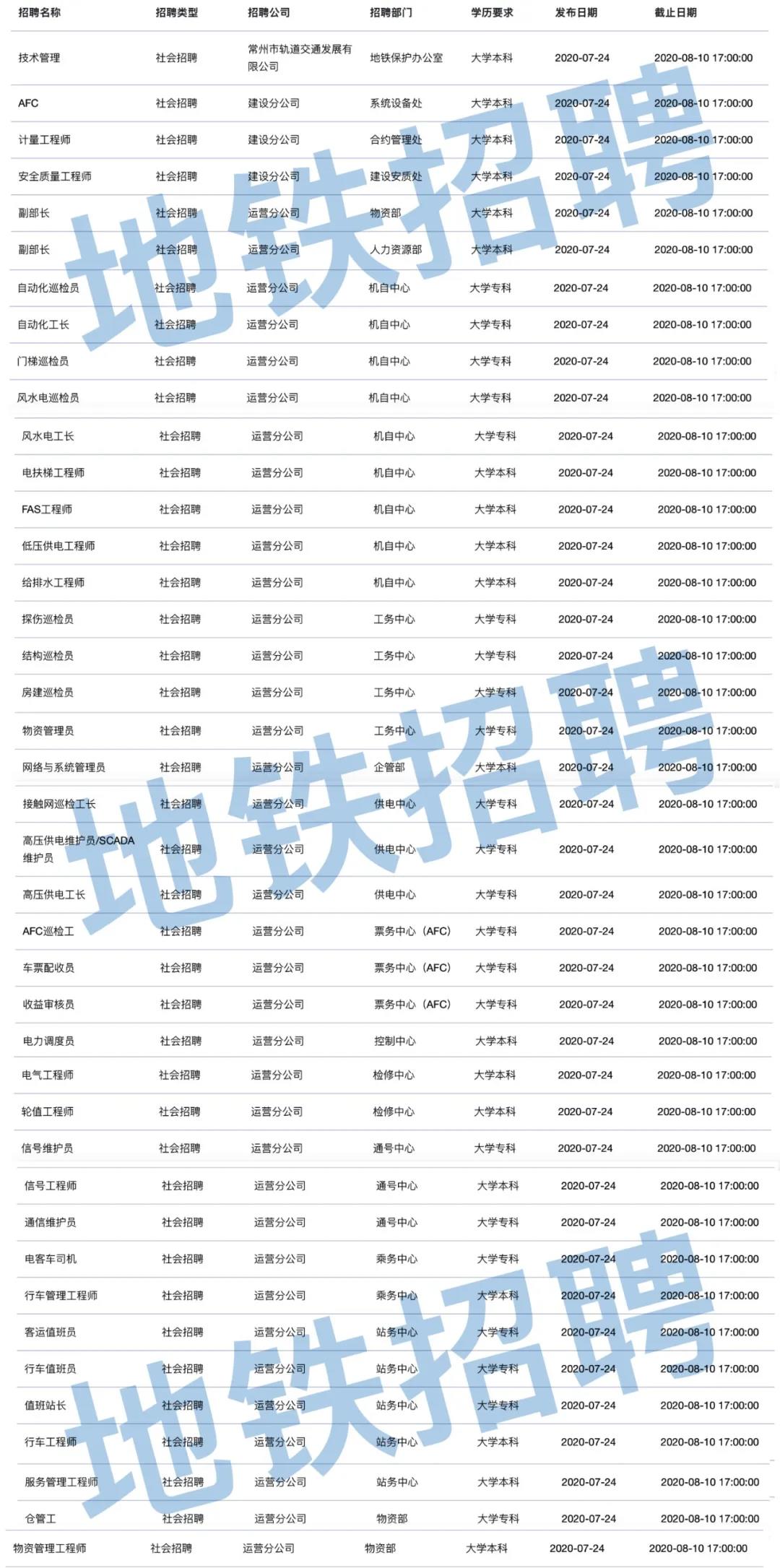 更多岗位详细查询:http://cweb.czmetro.net.cn:8003/#/recruit。