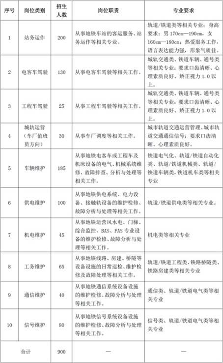 1、本次招生均为地铁运营一线生产岗位,报名人员须服从工作安排。