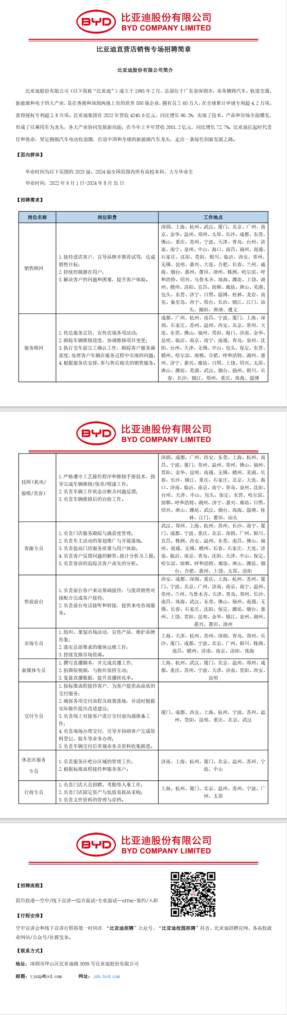 比亚迪直营店销售专场招聘简章