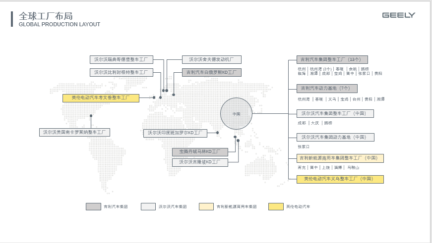 吉利物流从零部件场外运输入库到场内运输至线边,从整车公路运输至全国各地到零部件海铁联运至全球。